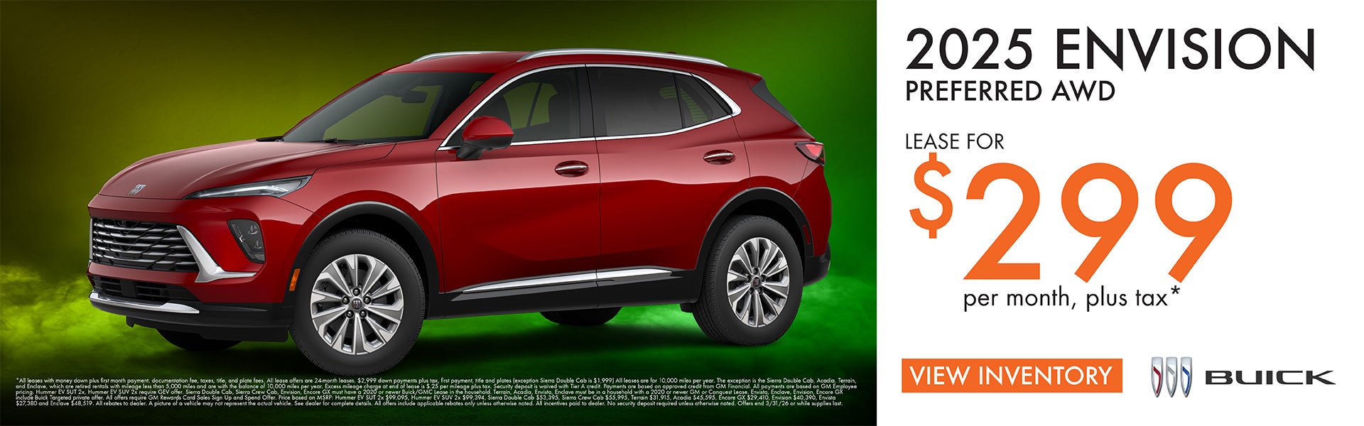 *All leases with money down plus first month payment, documentation fee, taxes, title, and plate fees. All lease offers are 24-month leases. $2,999 down payments plus tax, first payment, title and plates (exception Sierra Double Cab is $1,999) All leases are for 10,000 miles per year. The exception is the Sierra Double Cab, Acadia, Terrain, and Enclave, which are retired rentals with mileage less than 5,000 miles and are with the balance of 10,000 miles per year. Excess mileage charge at end of lease is $.25 per mileage plus tax. Security deposit is waived with Tier A credit. Payments are based on approved credit from GM Financial. All payments are based on GM Employee pricing. Hummer EV SUT 2x, Hummer EV SUV 2x require GEV offer. Sierra Double Cab, Sierra Crew Cab, Envision, Encore GX must have a 2020 or newer Buick/GMC Lease in the household. Terrain, Acadia, Envista, Enclave must be in a household with a 2020 or newer GM or Conquest Lease. Envista, Enclave, Envision, Encore GX include Buick Targeted private offer. All offers require GM Rewards Card Sales Sign Up and Spend Offer. Price based on MSRP: Hummer EV SUT 2x $99,095, Hummer EV SUV 2x $99,394, Sierra Double Cab $53,395, Sierra Crew Cab $55,995, Terrain $31,915, Acadia $45,595, Encore GX $29,410, Envision $40,390, Envista $27,380 and Enclave $48,519. All rebates to dealer. A picture of a vehicle may not represent the actual vehicle. See dealer for complete details. All offers include applicable rebates only unless otherwise noted. All incentives paid to dealer. No security deposit required unless otherwise noted. Offers end 3/31/26 or while supplies last.